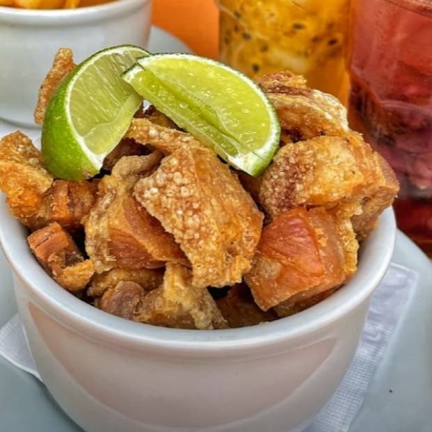 Deliciosos pedacinhos de panceta bem fritos e dourados.