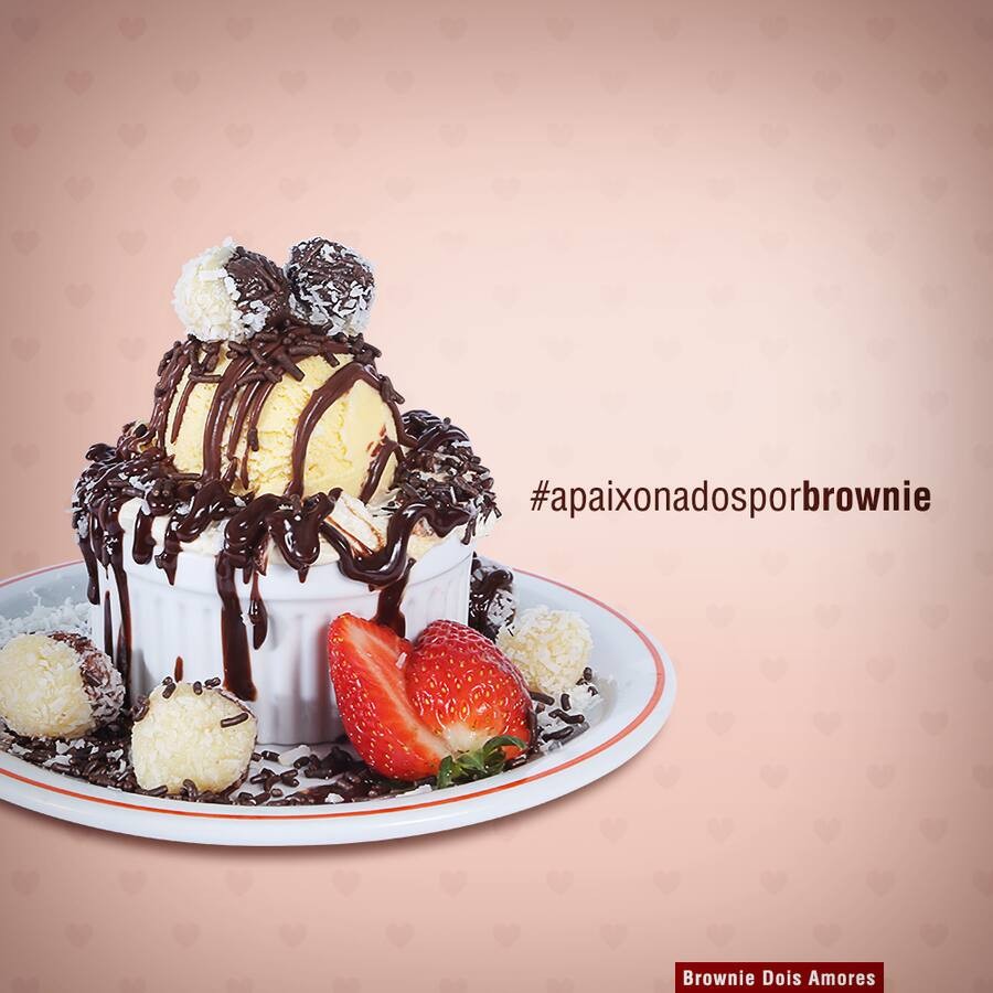 Experimente o incrível Brownie Dois Amores! Um delicioso brownie com ganache de truffa, beijinho e brigadeiro, acompanhado de sorvete de creme e uma irresistível calda de chocolate. Uma combinação perfeita de sabores que vai te deixar com água na boca! Aproveite essa explosão de sabores em cada mordida. Foto ilustrativa. Produto entregue em embalagem descartável.