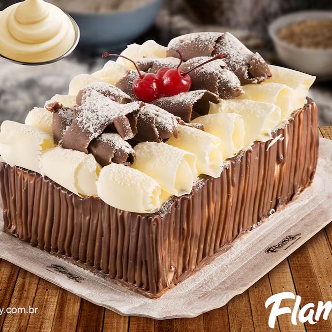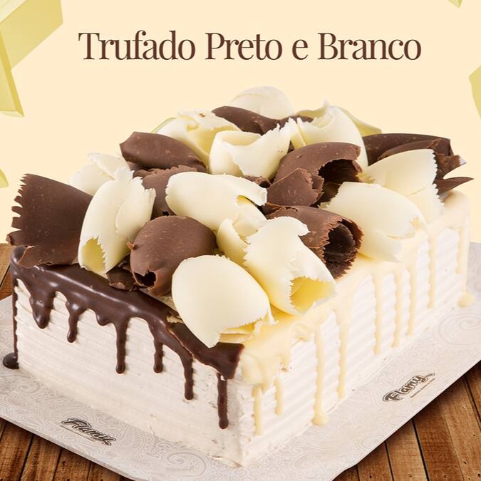 Massa chocolate, recheio de creme gelado e trufa de chocolate