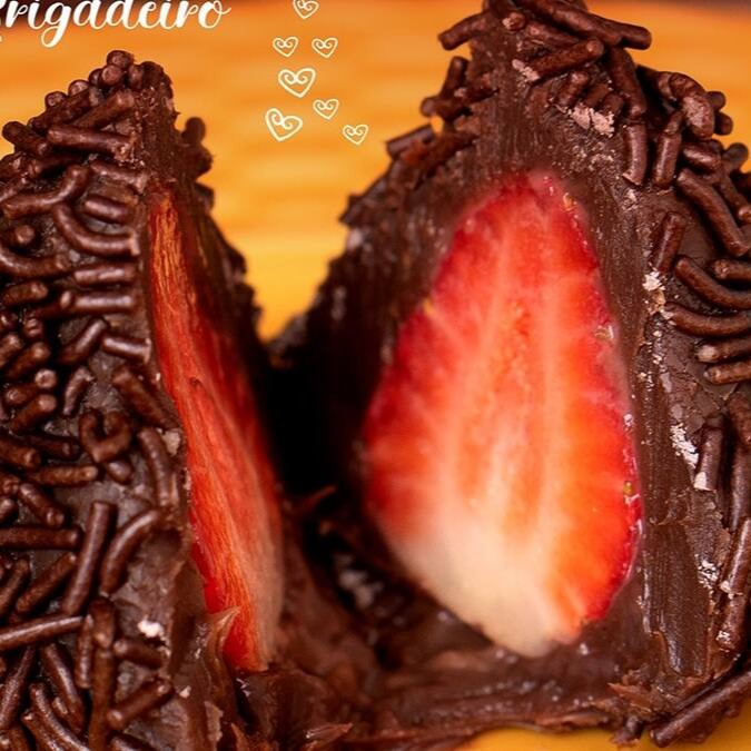 Deliciosa coxinha de brigadeiro recheada com morango