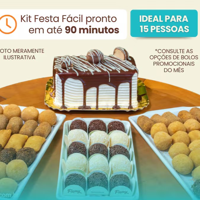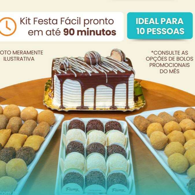 O Kit Festa Promo 10 é uma excelente opção para festas de médio porte, com o sabor irresistível dos nossos bolos e uma combinação de mini salgados e docinhos que garantem a diversão de todos os convidados.