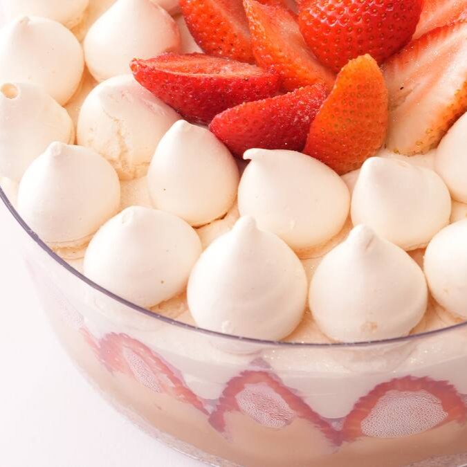 Creme nino com suspiros e morango