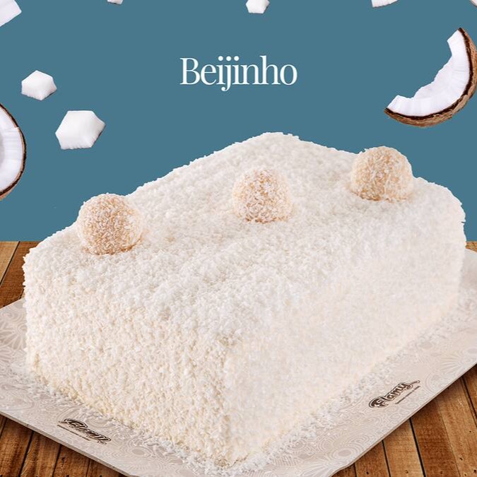 Pão de ló branco com recheio de beijinho e abacaxi.