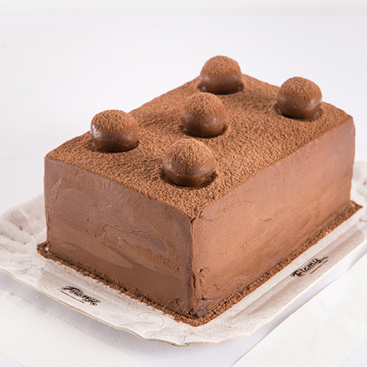 Pão de ló de chocolate, trufa, creme niño e minitrufas