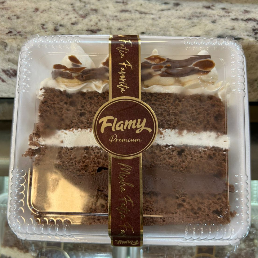 Massa chocolate, recheio de creme ninho