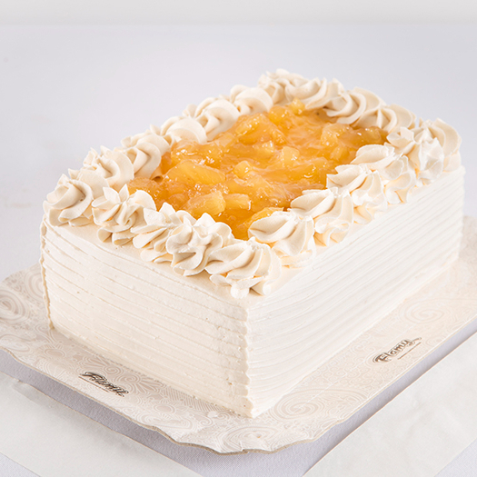 Pão de ló branco com recheio de creme niño e abacaxi.