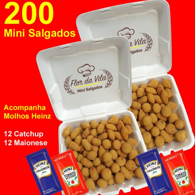 200 Mini Salgados Mistos(13grs) - 5 Sabores + Muito Molhos Heinz - Emb. Isopor (promo)