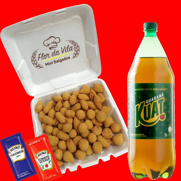 100 Mini Salgados Mistos(13grs) + Kuat 2l+ Molhos Heinz - 5 Sabores - Emb Isopor (promo)