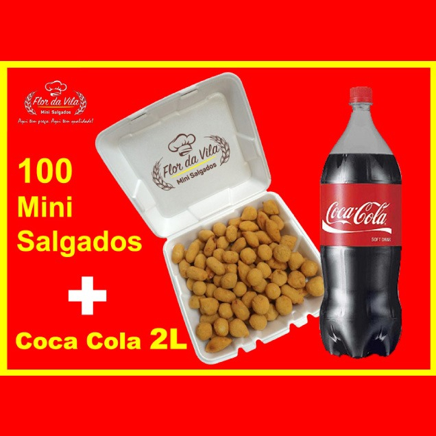 100 Mini Salgados Mistos(13grs) - 5 Sabores + Coca Cola 2l - Emb. Isopor (promo)