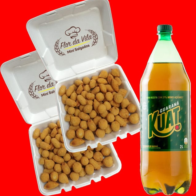 200 Deliciosos Mini Salgados Mistos(13grs) - 5 Sabores: Coxinha, pres./queijo, rissole de carne, enroladinho de salsicha e requeijão cremoso. Acompanha Kuat 2L. Embalagem isopor. Não podemos fazer alterações neste item promocional.