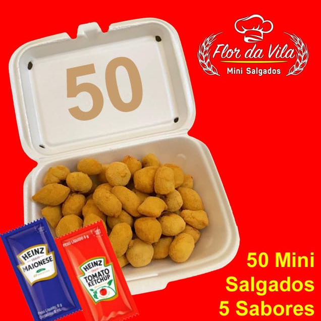 50 Deliciosos Mini Salgados(13grs) - 5 Sabores + Molhos Heinz (50-2)
