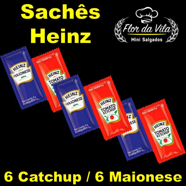 Pacotinho com 6 sachês catchup e 6 sachês maionese da marca Heinz