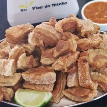 Porção caprichada de torresminho da casa com cerca de 400 gramas (pronta)