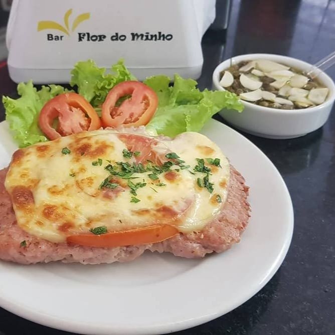 O 'Burguer do Minho' é uma requintada opção da categoria 'Hambúrguer Gourmet'. Esse prato é composto por um suculento e saboroso hambúrguer caseiro de 180g, rico em sabor e textura. Encimado com uma camada generosa de mussarela derretida, ele se harmoniza perfeitamente com fatias finas de presunto. O milho acrescenta um toque adocicado, enquanto o ovo frito dá um charme especial ao prato. O bacon crocante e o requeijão cremoso agregam ainda mais sabor. A refrescante alface e o tomate maduro trazem equilíbrio, proporcionando um contraste perfeito de sabores. Tudo isso acondicionado em um pão fresco e macio. Um prato que certamente irá satisfazer os paladares mais exigentes.