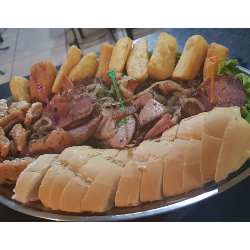 Pernil, Pão Frances, Mandioca frita e Torresmo