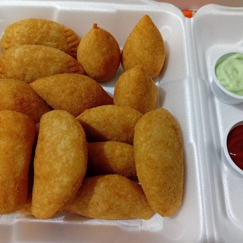 5 salgados da sua escolha + uma bebida pequena grátis