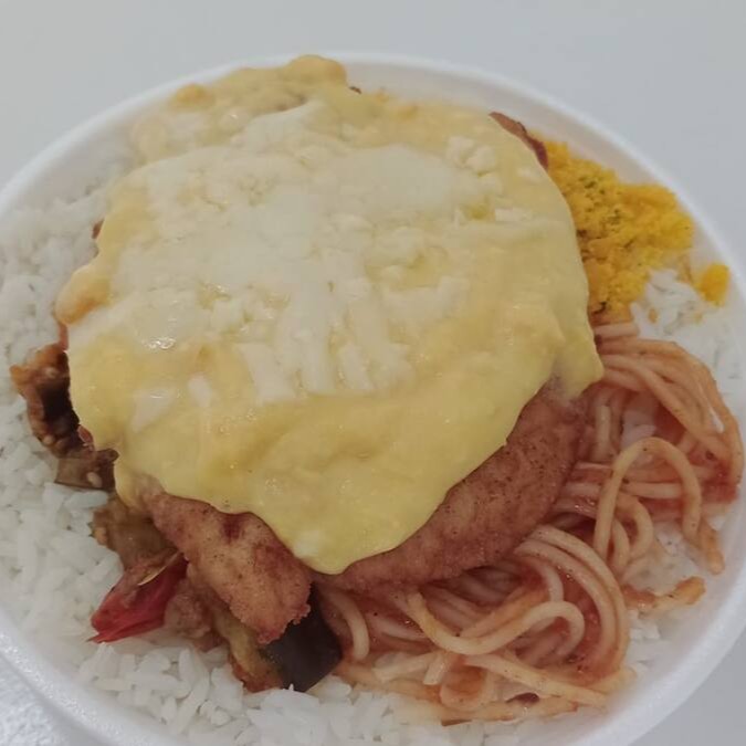 Acompanha: Arroz, Feijão, Bife, Ovo frito, Macarrão, Farofa, Legumes E Salada A Parte