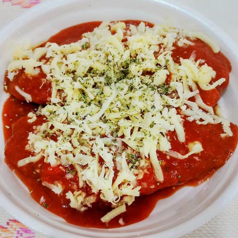 Filé de Frango a Milanesa com Molho de tomate, Mussarela e Orégano