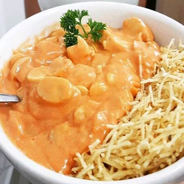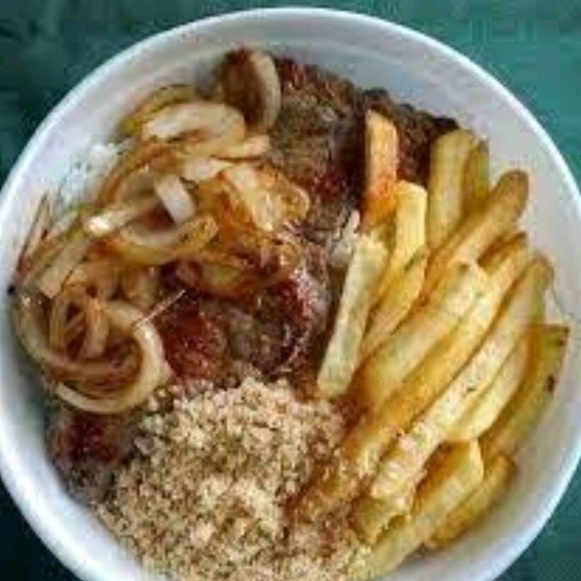 Arroz, feijoada, farofa, couve, vinagrete e torresmo. Feijoada completa : pé, orelha, costelinha, carne seca e bacon.