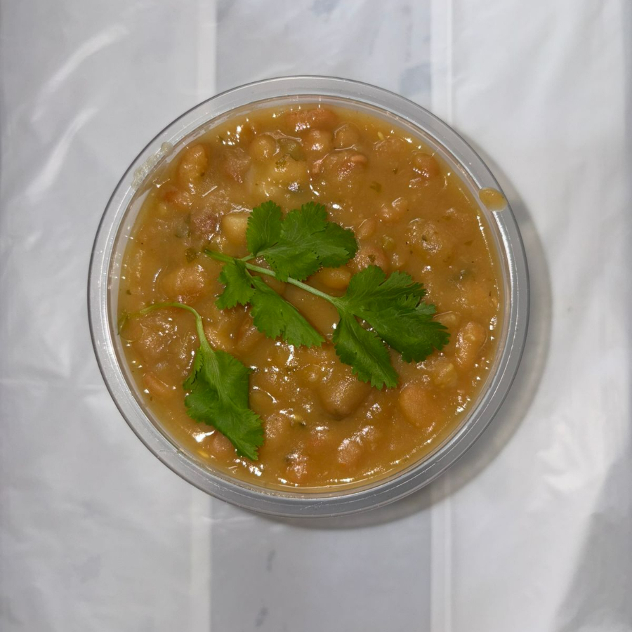 Marmita G de feijoada, marmita G de arroz, marmita P de torresmo. Farofa, couve, e vinagrete. Feijoada completa com : pé, orelha, costelinha, carne seca e bacon.