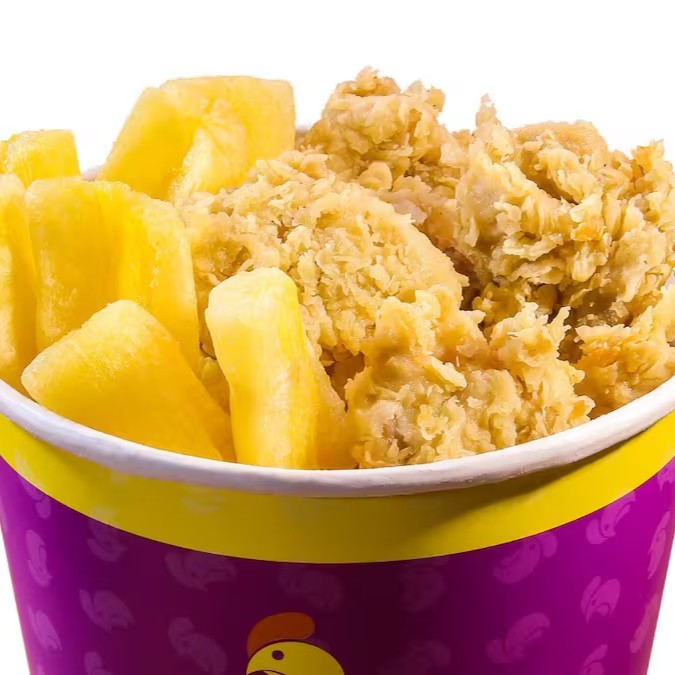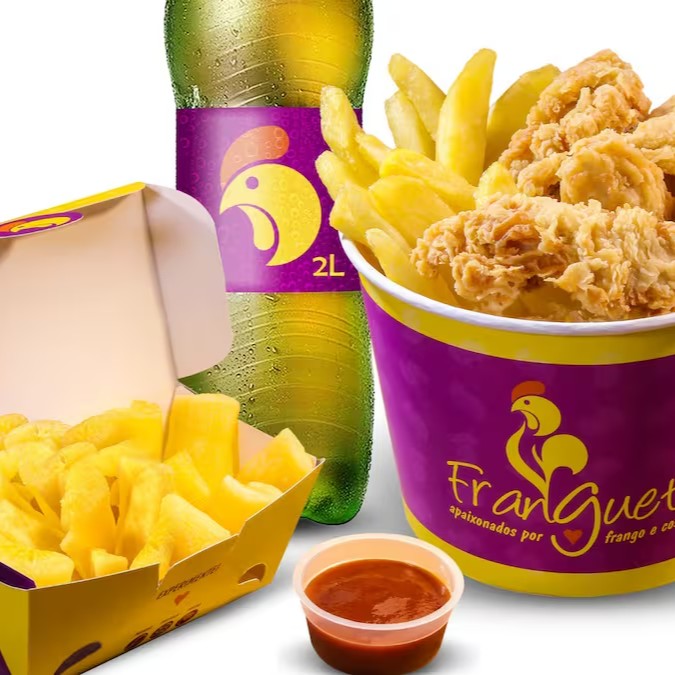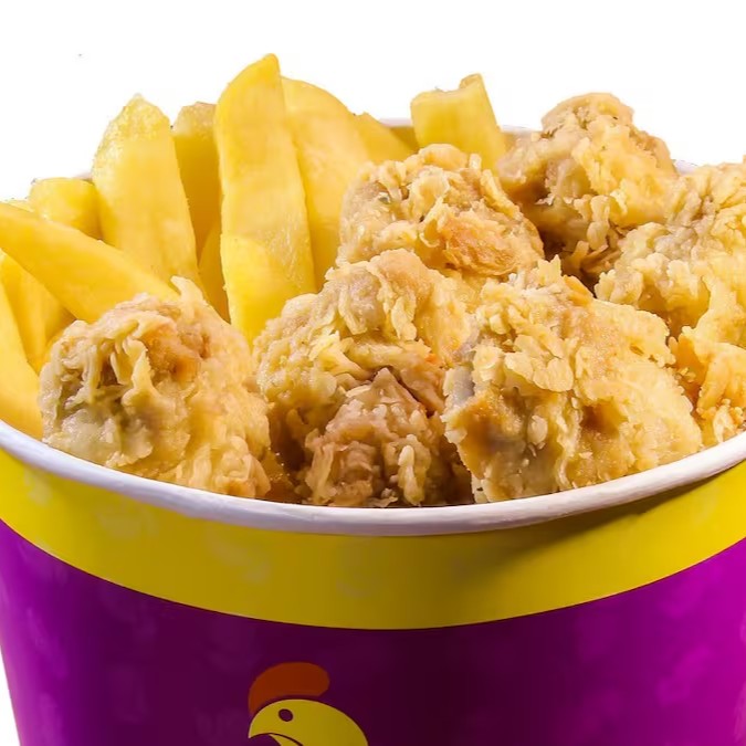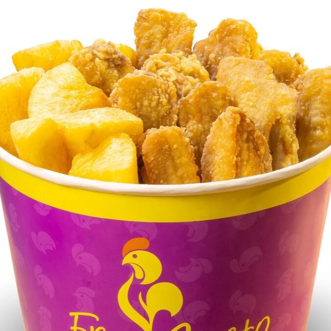 Combo contendo um balde médio de 600 gr de seu corte escolhido (filezinho de peito, costelinha suína, filé de sobrecoxa, coxinha da asa ou tulipa ) + 200 gramas de batata frita ou mandioca + porção individual (batata frita ou mandioca) + 1 refrigerante + 2 molho artesanal.