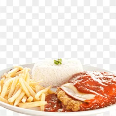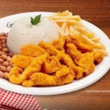 Deliciosos pedaços de filezinho de peito sem osso empanados de forma crocante e suculento por dentro + acompanhamento (fritas ou mandioca) + uma opção de molho.