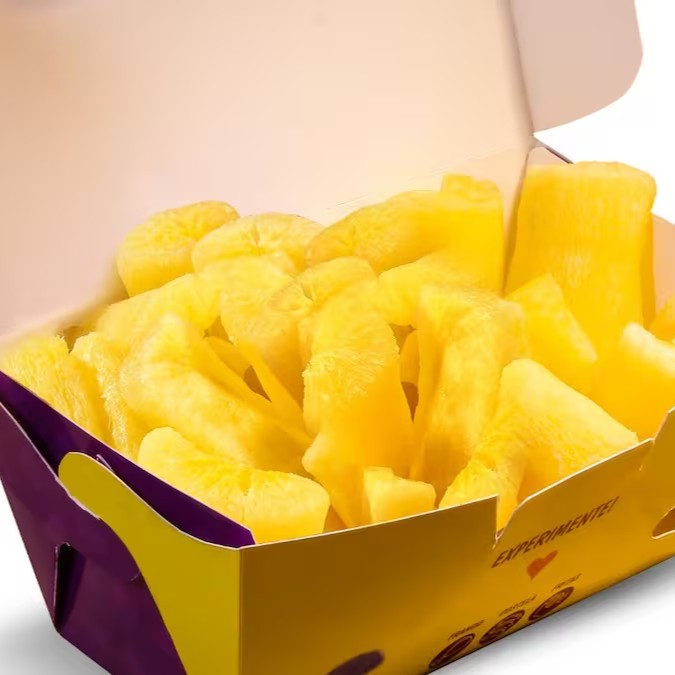 Porção Individual de Mandioca Frita (280 gramas) + uma opção de molho.