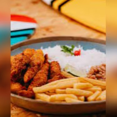 Deliciosos pedaços de filé de peixe (200 gr) empanados de forma crocante e suculento por dentro + acompanhamento 80 gr de (fritas ou mandioca) + uma opção de molho.