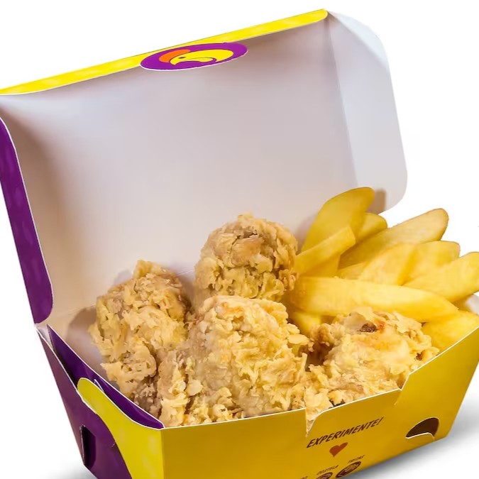 Combo contendo um balde pequeno de 400 gr de seu corte escolhido (filezinho de peito, costelinha suína, filé de sobrecoxa, coxinha da asa ou tulipa ) + 100 gramas de batata frita ou mandioca + porção individual (batata frita ou mandioca) + 1 refrigerante + 1 molho artesanal.