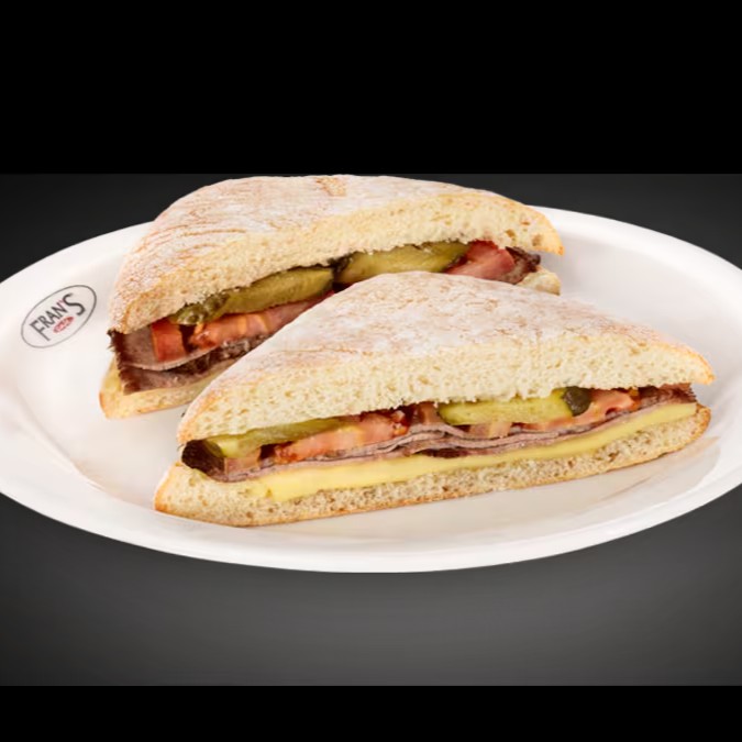 Rosbife, mix de queijos, tomate e picles no pão ciabatta. Um clássico , considerado patrimônio cultural imaterial do Estado de Sp em 2018. O Bauru surpreende no sabor e suculência. Prove, vai adorar !