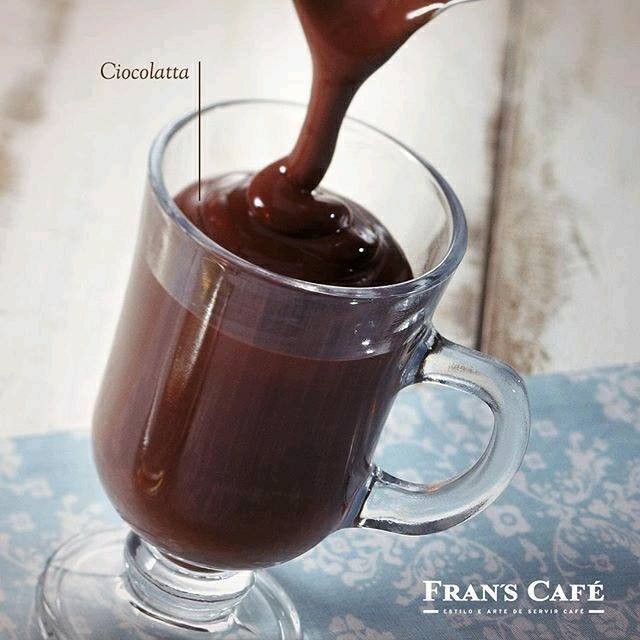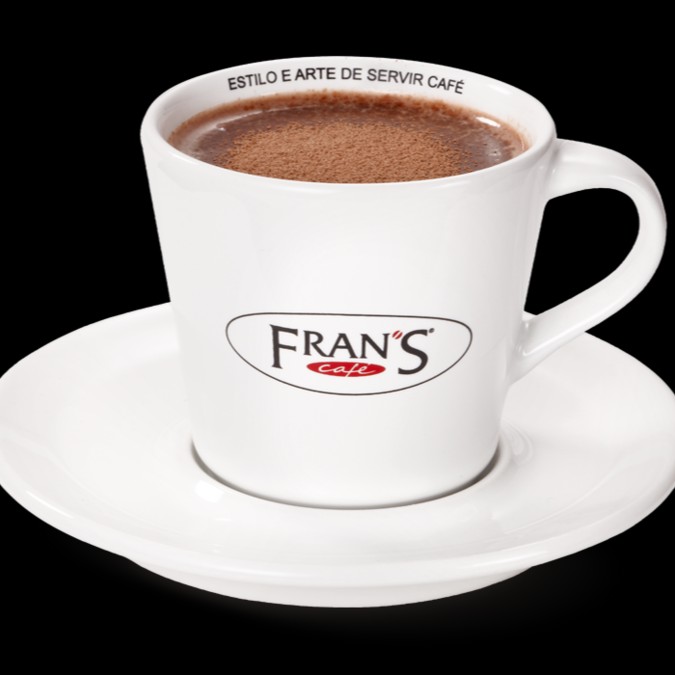 Leite vaporizado + chocolate em pó exclusivo Fran´s café. Uma delícia !