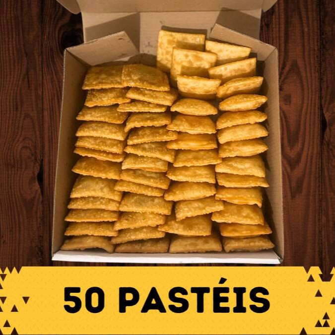50 Mini Pastéis deliciosos e bem fritinhos nos recheios de carne ou queijo.