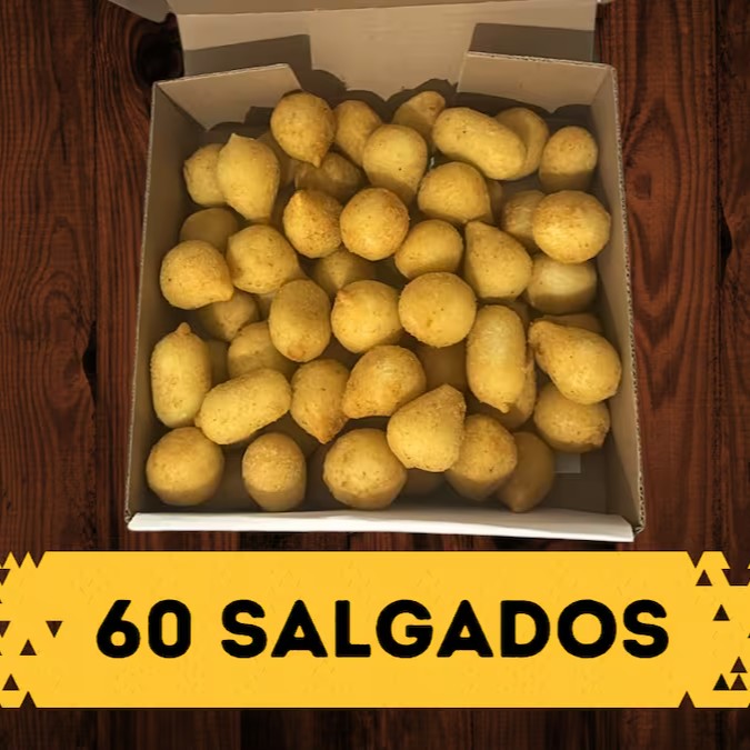 60 deliciosos mini salgados nas opções com 10 unidades de cada sabor: