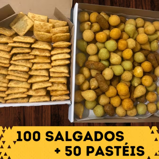 100 Salgados deliciosos + 50 pastéis bem fritinhos nas opções de: