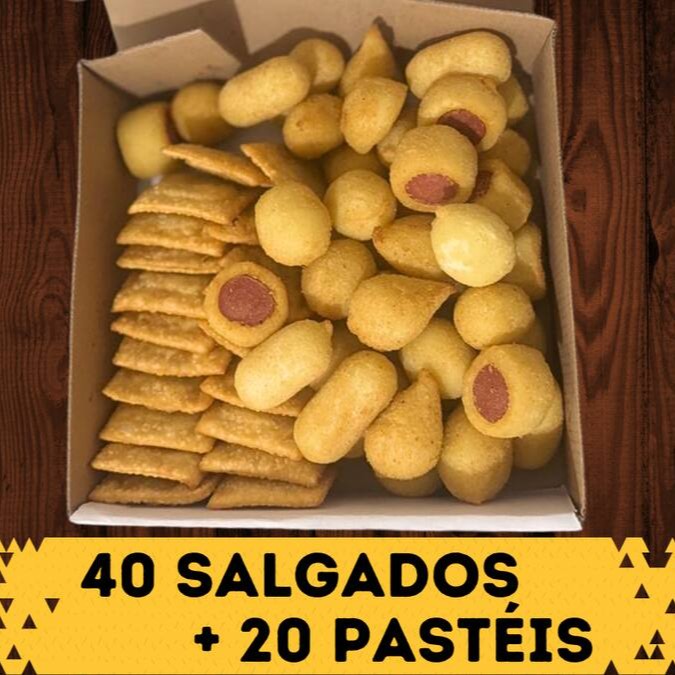 40 Salgados + 20 Pastéis + Refrigerante 2l
