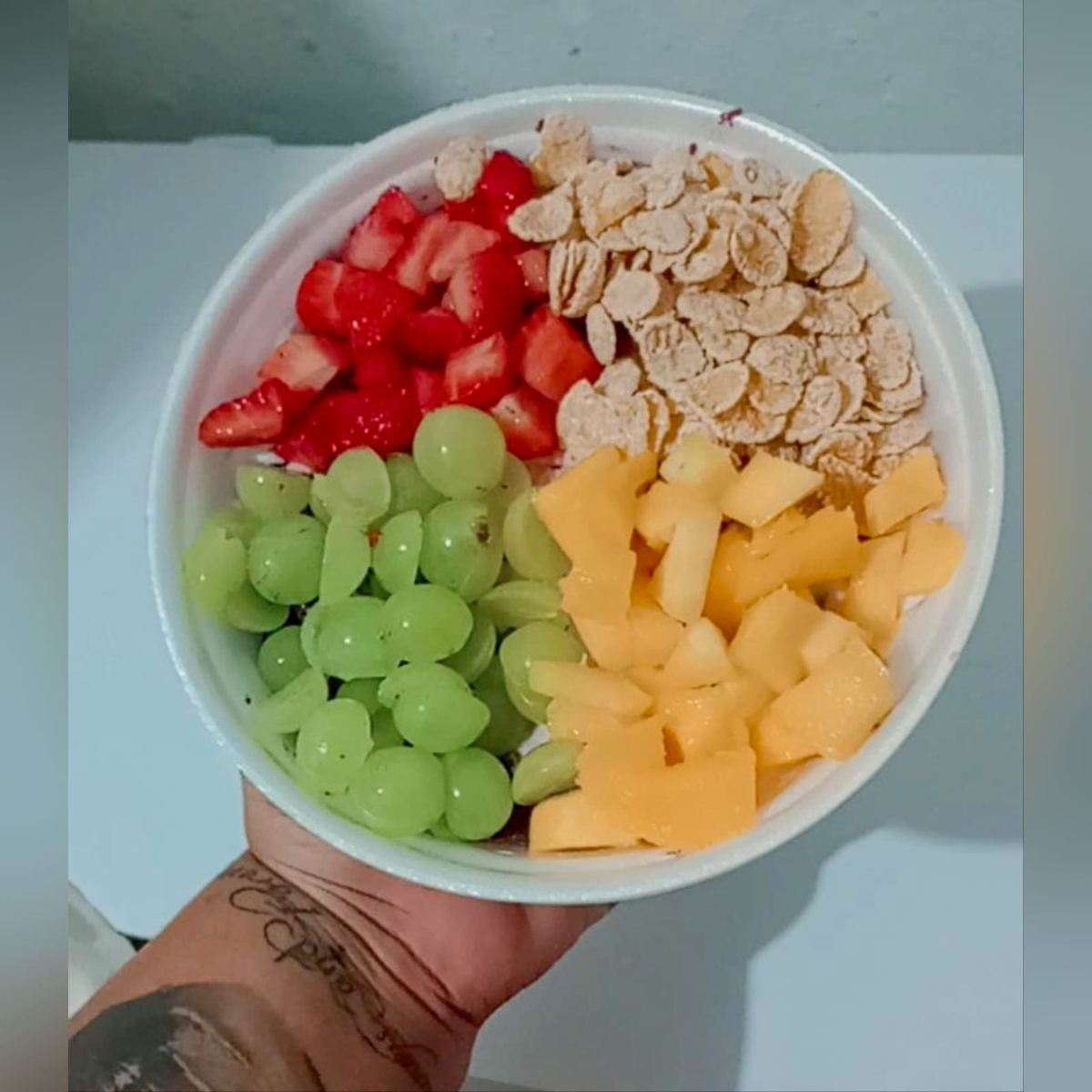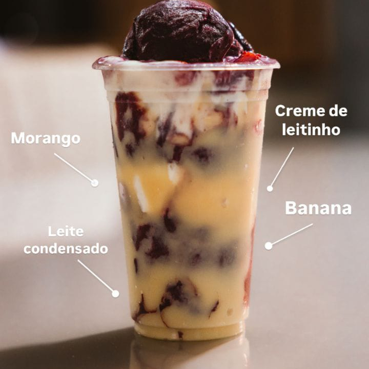 Açaí, leite, leite condensado, leite em pó e morango