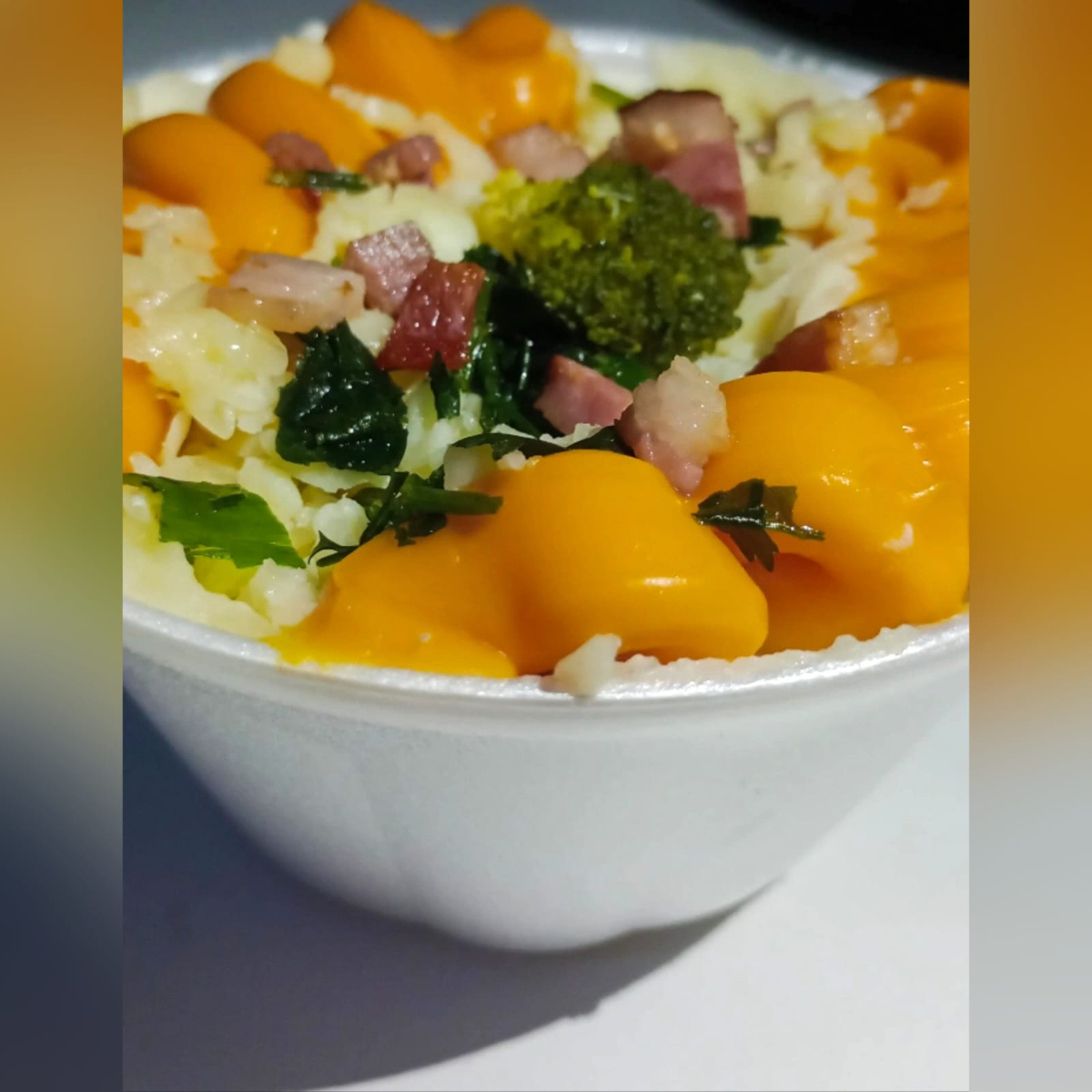 Sabe aquela batata recheada que faz qualquer um salivar?! Aqui tem ! São cerca de 500g de pura gostosura, batata macia, requeijão cremoso, Brócolis fresquinho, Bacon Crocante, molho branco especial da casa, coentro e queijo derretido. Para fechar com chave de ouro batata palha e com a sua escolha entre catupiry pu cheddar!