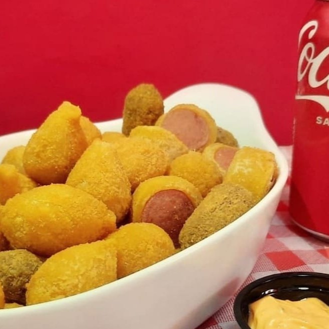 60 SALGADOS (COXINHA DE FRANGO BOLINHA DE QUEIJO TUBINHOS DE PRESUNTO E QUEIJO E ANEIS DE SALSICHA) 1 MOLHO E 1 REFRIGERANTE 2 LITROS