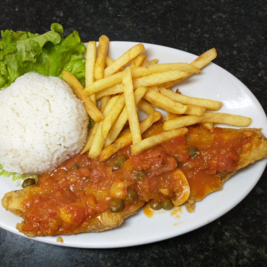 1 pessoa. Empanado ou grelhado com arroz e fritas