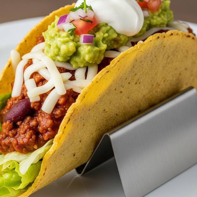 Para quem não tem medo de sabor intenso. Chili com carne, mussarela, guacamole, sour cream e alface. Um taco robusto, cremoso e cheio de atitude.