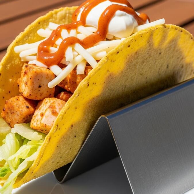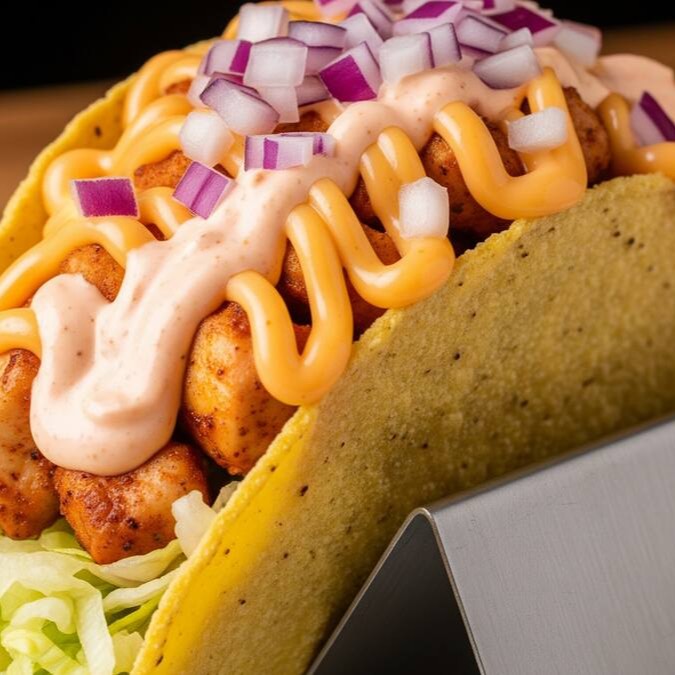 Explosão de sabor com toque picante. Frango em cubos, mussarela, sour cream, molho buffalo e alface. Um taco que é puro sabor e atitude.
