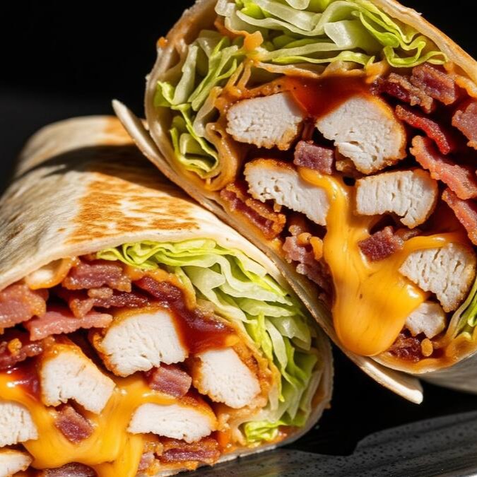 Frango suculento em cubos, bacon crocante, cheddar cremoso e o equilíbrio perfeito do sour cream, tudo envolto em uma tortilla levemente tostada.
