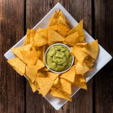 Porção individual de 60g de nachos crocantes e levemente temperados, acompanhada de 2 molhos à sua escolha.