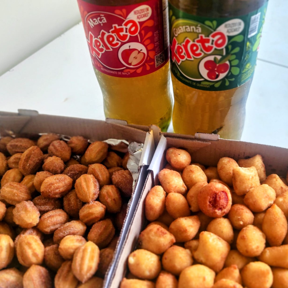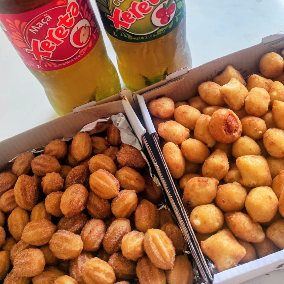 100 Mini Salgados mistos , sabor salsicha empanada solicitar por mensagem, 50 Mini Churros, 1 Xereta 2 litros