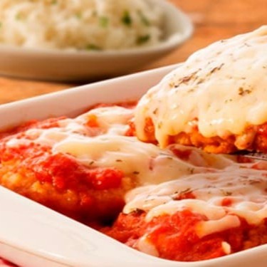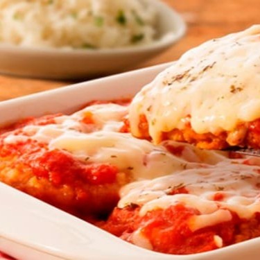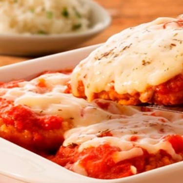 Filé de frango empanado, coberto com molho de tomate e muito queijo mussarela derretido, arroz soltinho, mix de vegetais, farofa temperada e batata frita sequinha! Pra completar o almoço, inclui uma Coca-Cola lata de 350ml! Nota: Se não quiser alguma das guarnições, favor notificar na observação do pedido!