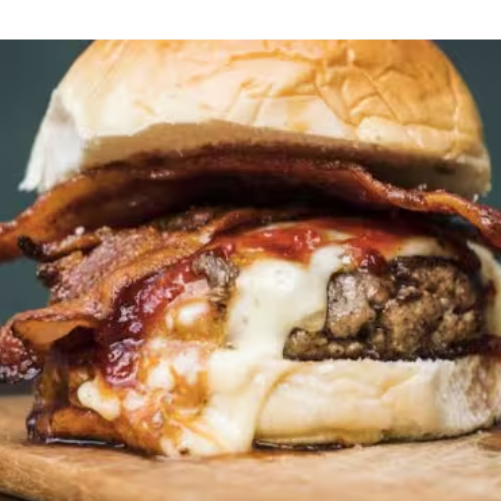 Pão Australiano, 2 hamburguer picanha 150g, cheddar, bacon defumado, cebola, rúcula, azeitona e molho mafioso+ BRINDE BATATA RUSTICA 75G