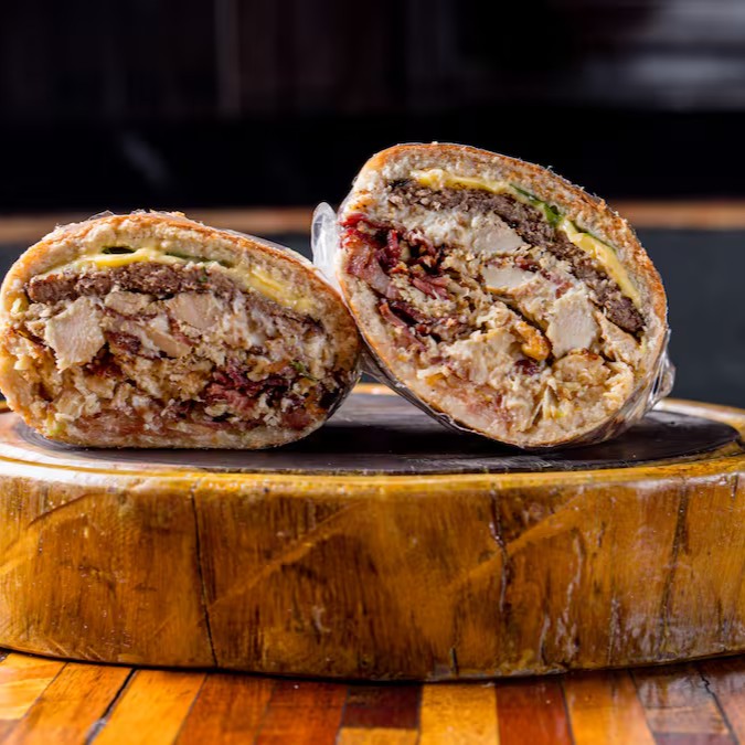 Pão De Hambúrguer, Tomate, Alface Ou Rúcula, Bacon, Batata Palha, 2 Queijos Prato, 2 Hambúrgueres (90g), 2 Ovos, Frango, Calabresa E Catupiry Original