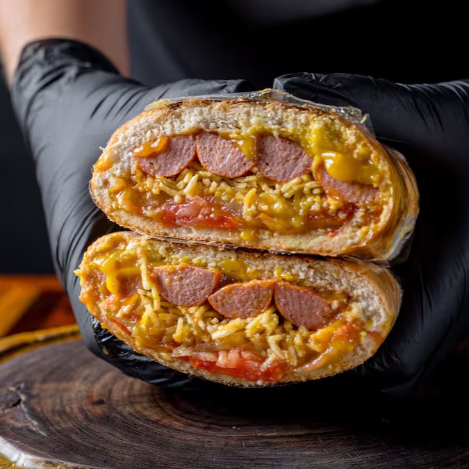 E Cheddar • Cortado Ao Meio Com Cobertura Extra De Cheddar