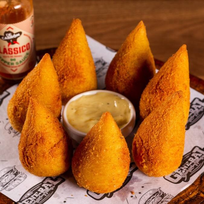Deliciosa porção com 7 unidades de coxinhas feitas com a nossa receita exclusiva da casa, acompanhadas da maionese da casa — crocrância, sabor e aquele toque especial que só a nossa receita tem!
