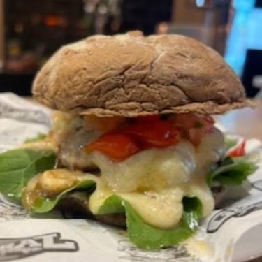 Pão brioche macio, maionese da casa, hambúrguer vegetariano suculento, 2 fatias de queijo prato derretidinho, cebola roxa fresca, alface crocante e tomate suculento.